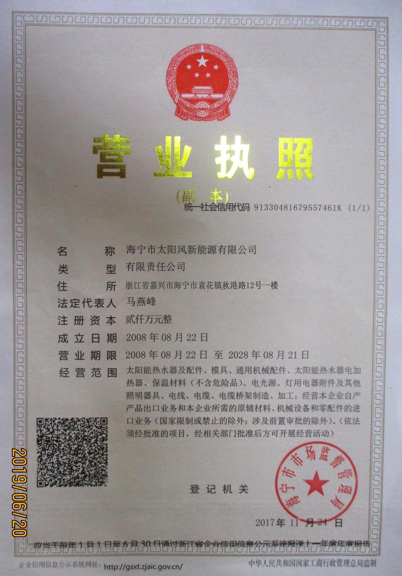Corporate name:Haining taiyangfeng new energy Co., Ltd